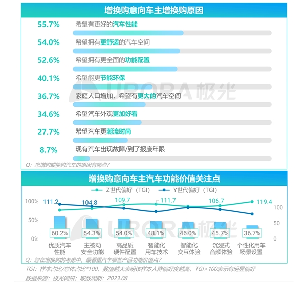 车主期望获取更优质舒适的体验;Y世代增换购更关注汽车性能和安全两大核心价值