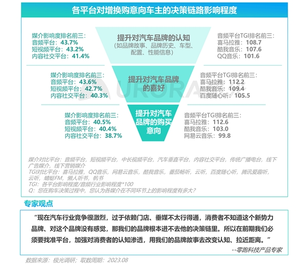 在车主增换购决策旅程中,音频平台在决策前链路上的作用效果显著