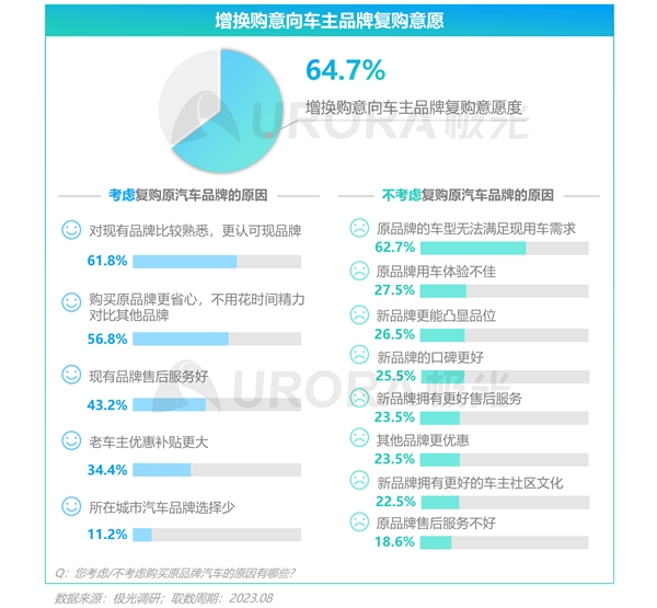 增换购意向车主品牌忠诚度高,高熟悉度为车主复购品牌的主要原因