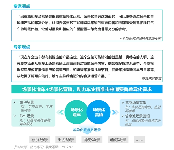 • 汽车作为生活场景的延伸正在成为一种共识,对于具备了一定购车用车经验的增换购意向车主而言,他们更加关注汽车如何满足他们的日常出行的场景需求