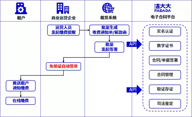 1、通过法大大开放API平台实现与租赁系统的快速对接;