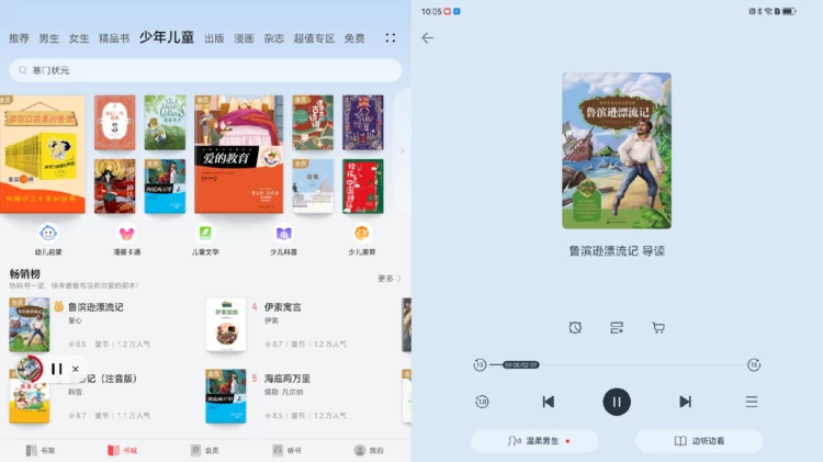 对于家长来说,课外书种类繁多,如何为孩子挑选适合的书?为此,华为阅读上架了教育部阅读指导目录中的书籍,并分为小学、初中、高中部分,让每个学龄段的孩子都可以找到适合自己的课外书。在“分龄阅读”方面,华为阅读专为3-6岁、7-10岁、11-14岁的儿童分类推荐,实现全年龄层覆盖。对于想要打造双语环境的家长,也有《父与子》这类双语标注的书籍,让华为阅读陪伴孩子成长每一步。