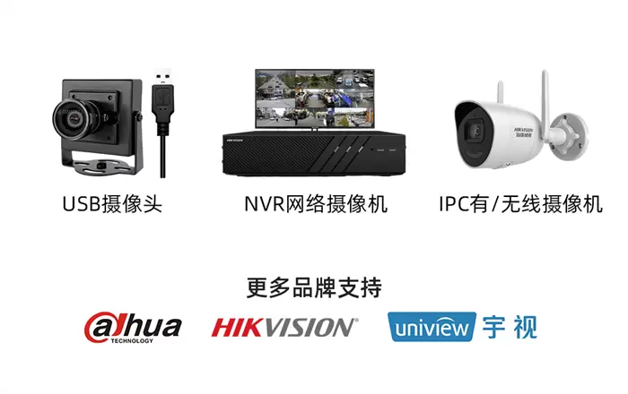 万里牛视频追溯方案支持市面上最常见的USB摄像头,不挑品牌型号,免安装驱动即插即用,可使企业低成本的快速上线运行。同时针对中大型企业仓储,也支持传统安防监控的IPC网络摄像头、NVR网络录像机等设备,可兼容包括此行业领先的大华、海康等品牌。