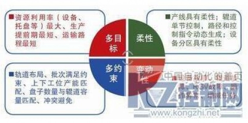 除了以上三方面目标以外,还要满足智能车间的生产调度和物流调度需求,主要包括三方面特点和需求:柔性、多约束和变动性。