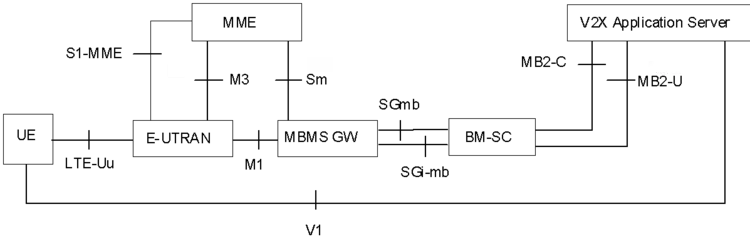 基于MBMS LTE-Uu的V2X通信架构如图3所示: