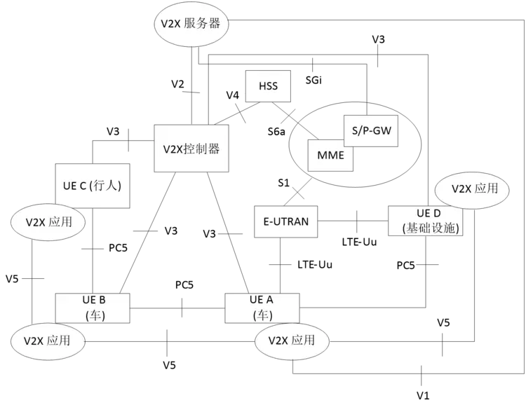 车联网是移动蜂窝网络的一个全新应用,因此涉及到的接口网元众多,下面逐一解释: