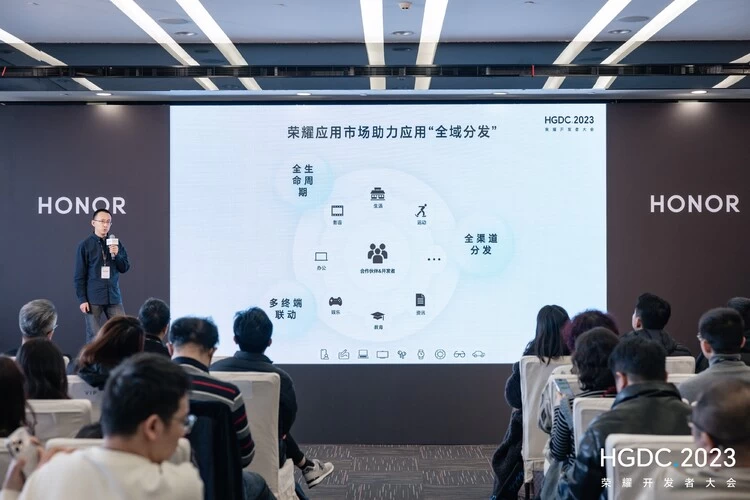 全渠道分发层面,荣耀应用市场结合自身系统应用的使用场景,如YOYO建议、荣耀搜索、热门推荐、负一屏等OS全场景资源,再叠加合作伙伴和开发者所开发应用的使用场景,将两者合二为一,建设一个更加融合、贴合用户需求的应用分发渠道。在此也期待广大开发者的加入,联合建造真正合作共赢的分发环境。