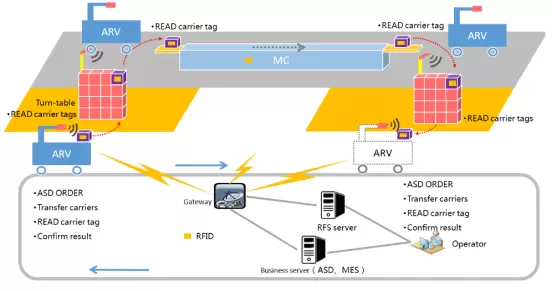 针对这种情况,瑞章提出了基于RFID物联网的智能工厂设计,通过给产品物料的载具,添加RFID标签,结合智能工作站、智能转出设备,用ARV来实现不同工序之间的物料、生产机台的上下料搬运,通过RFID技术来完成整个系统的信息串联和通讯,最终达到物料的全自动搬运和信息数字化、智能化。整个解决方案覆盖智能标签、智能辨识、智能搬运、智能存储、中间件平台和管理平台,6大模块12大类产品。