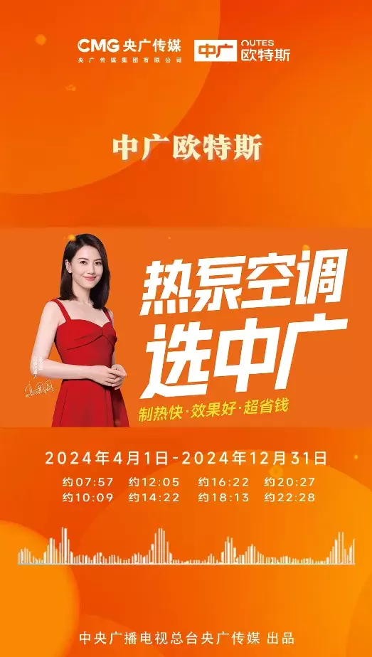 近年来,中广欧特斯紧密携手国家级媒体平台,持续构建高密度、全方位的品牌传播矩阵,抢占品牌宣发制高点。中广欧特斯品牌故事片、有声广告等多次荣登CCTV和广播电台,以专业化、品牌化、规模化的形象展示,让绿色、高效、节能、健康的中广热泵空调产品进入了更多家庭的视野。