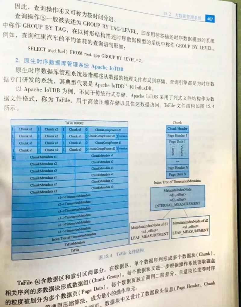《数据库系统概论(第6版)》第 15 章:大数据管理系统中,详细介绍了时序数据库 IoTDB 自研的列式文件格式 TsFile,并对其构建的列式存储架构如何加速了 IoTDB 的时序特性查询速度、查询引擎如何进一步提升 CPU 执行效率等要点进行了展开。