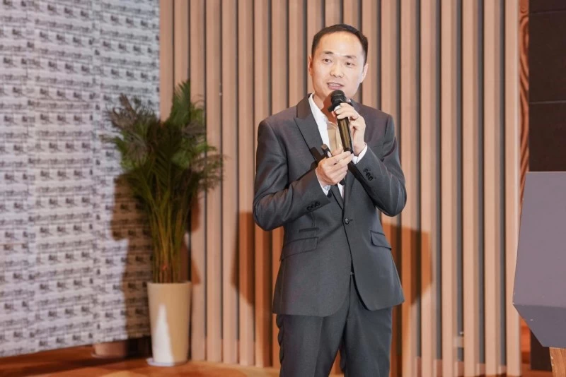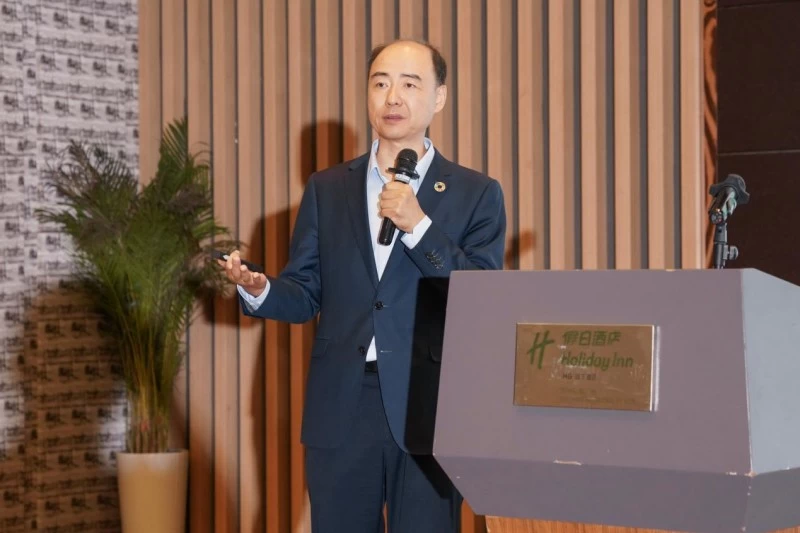 迈为股份有限公司战略发展总监齐学军先生从异质结技术助力光伏绿色供应链的角度进行了分享。齐学军先生首先介绍了迈为股份作为泛半导体高端装备制造商的雄厚实力,随后详细介绍异质结技术的优越性及其在高转换效率、低碳足迹方面的突出表现,探讨异质结技术的可持续发展趋势,特别是银与铟用量的降低策略,最后分享了在构建绿色供应链上的实践与成效。