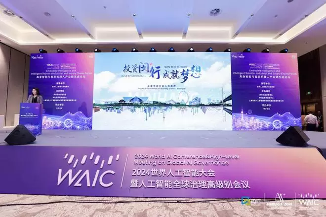 7月6日,正值小暑,上海世博展览馆迎来了一场盛会——「2024WAIC具身智能与智能机器人产业链生态论坛」。这场论坛由世界人工智能大会组委会指导,闵行区经济委员会、闵行区投资促进中心、上海马桥人工智能创新试验区建设发展有限公司主办,甲子光年协办。