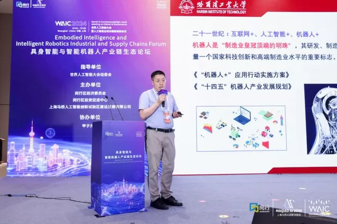 上海马桥人工智能创新试验区公司副总经理夏吟则详细介绍了试验区作为智能服务机器人产业的重要基地,拥有从核心零部件到机器人本体的完整产业链,包括芯片、控制器、伺服电机、末端执行器等关键技术领域,以及非夕科技、飒智智能等一批龙头和配套企业。