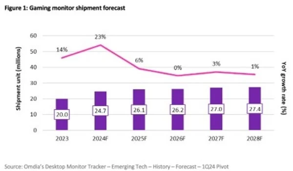 Omdia预测在2028年台式游戏显示器销量将增长至2470万台