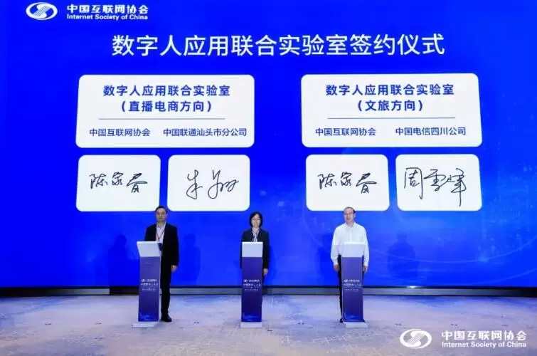会上举办了首批数字人应用联合实验室签约仪式,中国互联网协会与中国电信四川公司签约文旅数字人应用联合实验室,与中国联通汕头市分公司签约电商直播数字人应用联合实验室。数字人应用实验“区域行”系列活动(首场)在北京市海淀区启动。