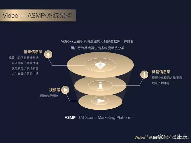 Video++最新迭代升级的ASMP(AI Scene Marketing Platform)系统,在革新视频广告投放、AI场景营销上取得了傲人的成果。AI情景营销平台是通过VideoAI技术将全网海量视频进行结构化分析,技术完成从视频层到标签信息层、再到情景信息层的系统架构,精准快速智能的识别视频中出现的明星/人脸、品牌、场景和物体等,结合海量视频标签数据库,进而产生具有巨大商业价值的情景单元。将视频内容中出现的消费场景进行识别和标签化,结合广告主的品牌投放需求和产品使用场景提供智能化投放策略和批量化投放,让用户在观看视频内容时有效获取到相关的品牌智能推荐信息,实现广告主精准投放的营销目的和效果。