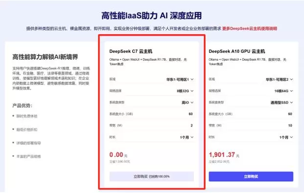 只需登录天翼云官网(https://www.ctyun.cn),进入智算云-高性能IaaS助力 AI 深度应用模块,选择DeepSeek C7云主机即可,名额有限,先到先得!