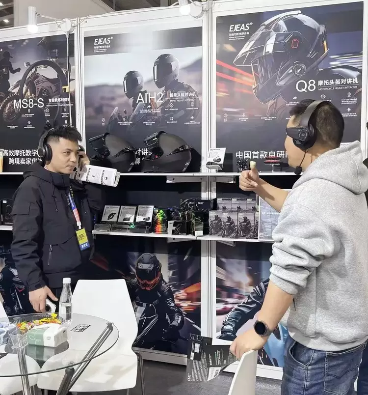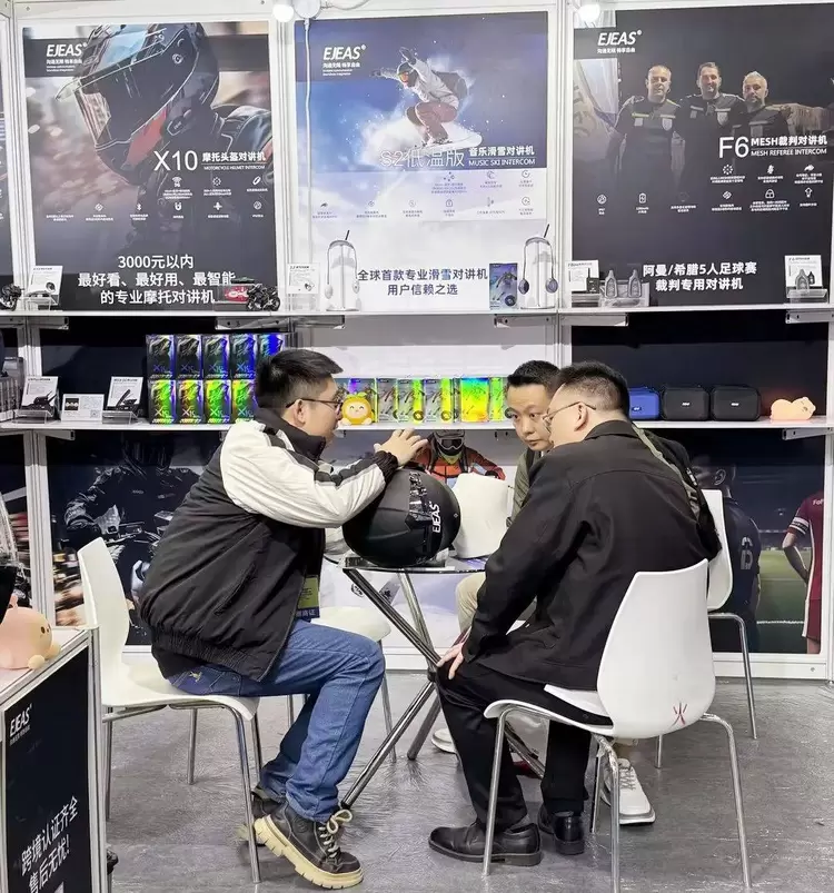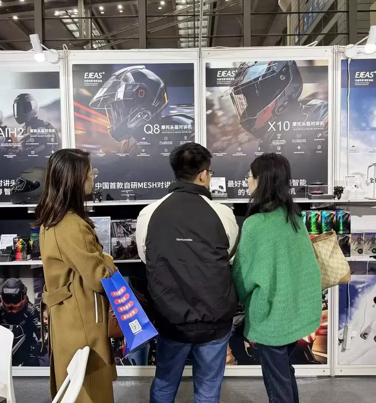 在展会现场,EJEAS的MESH对讲产品成为了大家争相体验的对象。MESH技术以其强大的信号穿透力和超远的对讲距离,赢得了现场观众的一致好评。纷纷表示彻底改变了他们对传统蓝牙对讲机的认知,无论是在复杂的展馆环境中,还是在嘈杂的现场氛围里,MESH对讲机都能保持清晰、稳定的通讯。一位来自国内的专业摩托车选手亲测后惊叹道:“我在展馆不同位置都进行了测试,最远距离长达800米左右,原本以为信号会断断续续,但非常稳定且对讲清晰无比,完全超出了我的预期。”