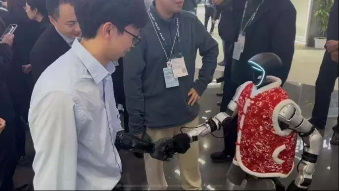 此次,BrainCo强脑科技展示了基于脑机接口技术的多项突破性成果。其中,智能仿生手体验官古月穿戴智能仿生手弹钢琴的精彩表演尤为引人注目,通过脑机接口技术,肢残人士能够精准控制智能仿生手,奏响悦耳动听的琴声,展现科技赋能生命的无限可能。现场,古月用仿生手与宇树机器人G1亲密互动,“赛博人类”触碰机械生命体的科幻场景真实上演,引发众人驻足围观,掀起一阵阵惊叹与掌声。