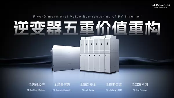阳光电源地面光伏首席专家潘年安表示,面对新战场、新要求,逆变器作为系统的“智能中枢”和电力桥梁,已经从过去的“独木桥”进化到“立交桥”。阳光电源率先对逆变器进行了五重系统价值重构,打造“全天候经济、全场景可靠、全链路安全、全周期智维、全网况构网”的5A融合解决方案。此次展会发布的两款新品1+X2.0模块化逆变器和大功率组串逆变器,正是基于5A融合理念打造的。