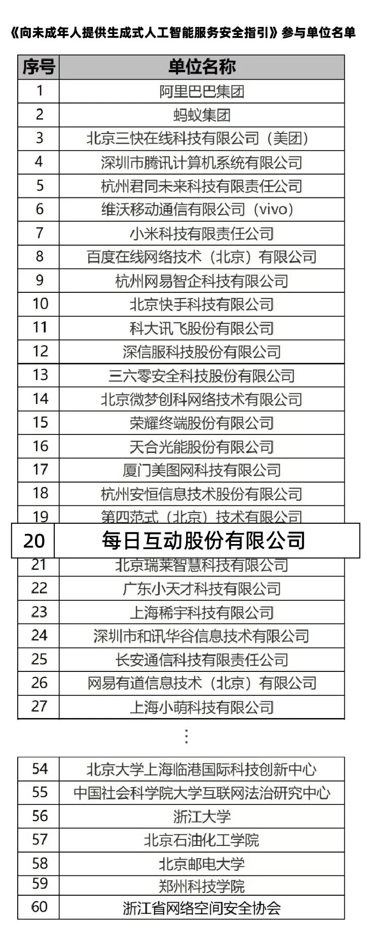 每日互动参编的《向未成年人提供生成式人工智能服务安全指引》正式发布