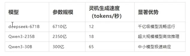 1.颠覆性成本优势:“单CPU,无GPU,无超频水冷”是革命性的标签。在达到实用级性能(远超人类阅读速度)的同时,将硬件采购成本、电力消耗、机房空间要求和后期维护复杂度降至最低,真正实现“AI廉价普惠”。