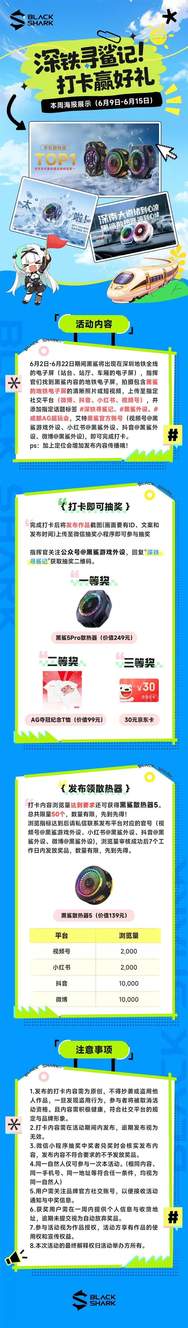 - 黑鲨潮袭深圳地铁!打卡赢新品和成都AG超玩会周边,指挥官速来集结!