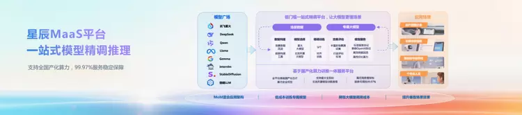 星辰系列开发平台的深层逻辑,是通过MaaS与Agent的协同,打造“模型精调-智能体开发-场景落地”的闭环生态。开发者可基于MaaS训练垂直模型,转而通过Agent平台快速封装为智能体,最终在星辰生态中完成从技术到产品的转化。这种“双轮驱动”的模式,既满足了企业对模型可控性的需求,又保留了智能体的灵活扩展空间,为千行百业的数字化升级提供了“乘数效应”。