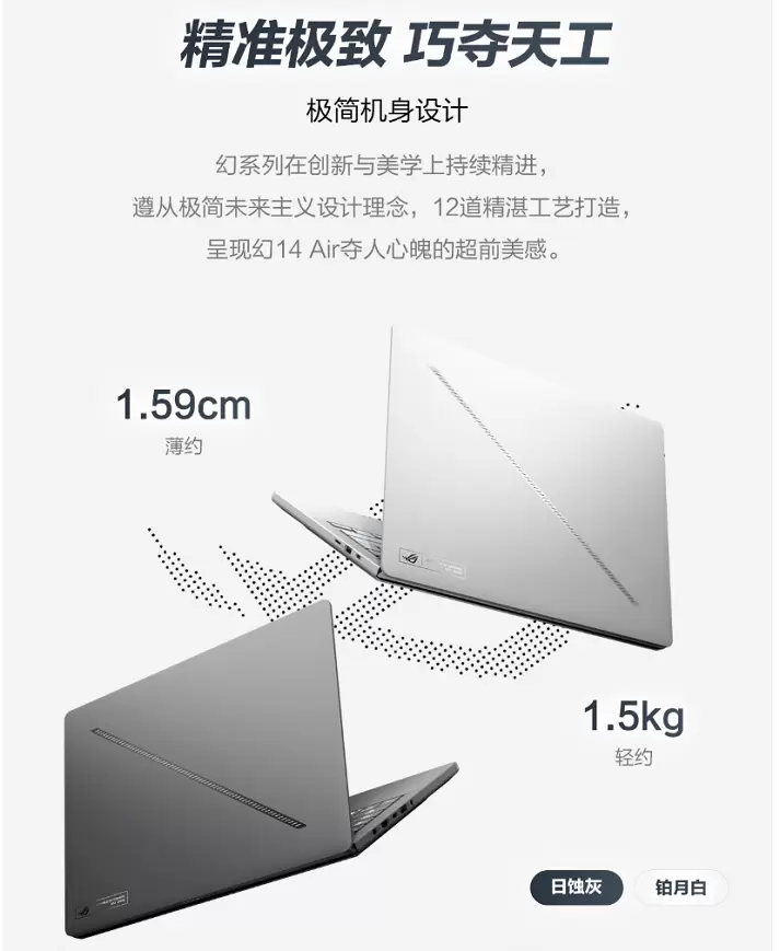 AMD 锐龙 AI 9 HX 370 处理器加持,轻薄性能完美之选ROG幻14 Air 2025