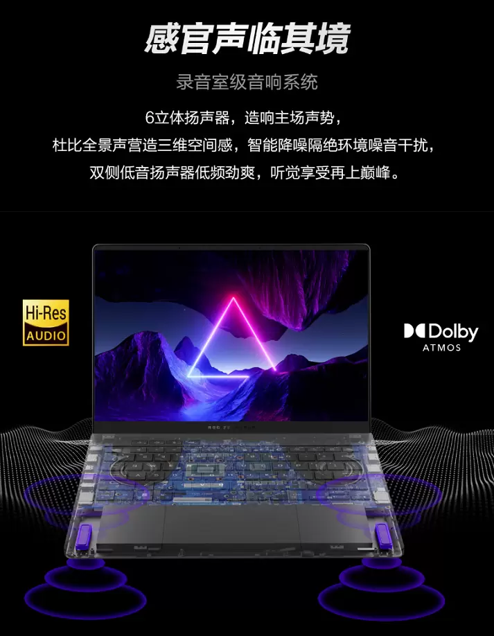 值得一提的是,ROG幻14 Air 2025还内置有6立体扬声器,拥有Hi-Res小金标和杜比全景声认证,可带来澄澈音质,营造颠覆听觉体验,具备Windows笔记本中独一档的功放效果,创作、娱乐更沉浸。