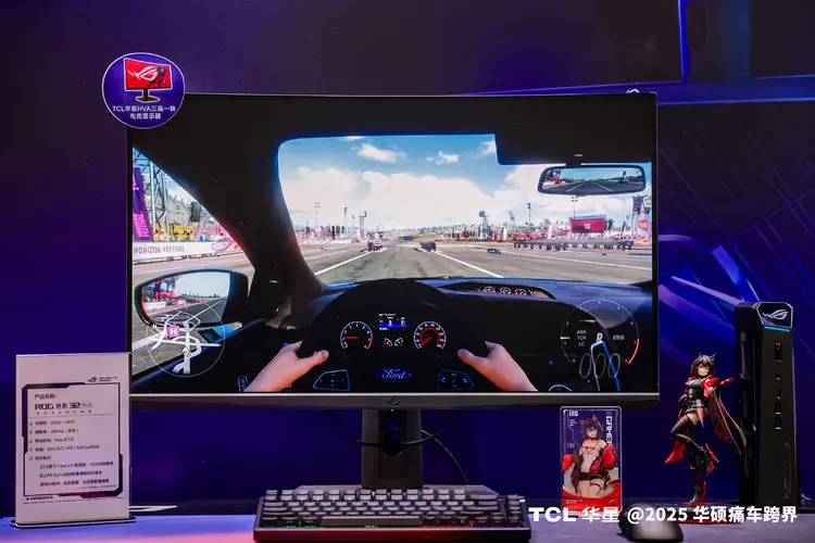 特别值得一提的是,TCL华星与华硕联合打造的ROG绝影32 PLUS XG32WCMS电竞显示器,收获了现场体验者的一致好评。这款产品的31.5" 曲面电竞屏,搭载了TCL华星自主研发的HVA“三高一快”(高对比、高曲率、高刷新、快响应)显示技术,曲率达到R1500,屏幕比例为16:9,广阔的视角配合曲面大屏,营造出环绕式的沉浸视觉体验,2560x1440的高分辨率,支持1ms GTG灰阶响应时间和280Hz的原生刷新率,在ROG显示器强大性能的驱动下,实现高帧率加上低延迟,为玩家带来无拖影、无撕裂的沉浸式游戏画面与极致流畅的游戏体验。通过这款产品,现场观众直观感受到前沿显示技术对痛车文化在视觉呈现上的颠覆性提升。