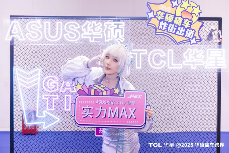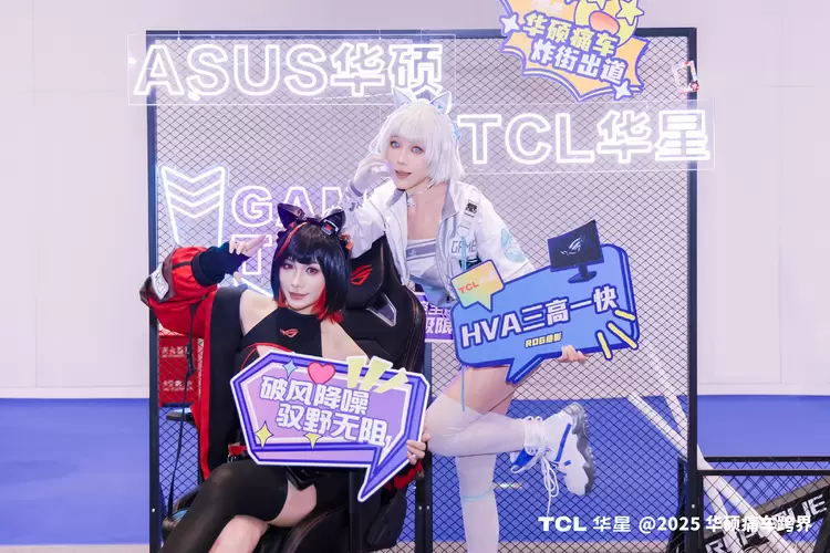 同时,为强化互动体验,展会现场特邀专业Coser团队还原虚拟IP角色形象,通过定制化互动游戏、限定周边派发等创新形式,吸引大量年轻用户驻足。而华硕则通过其强大的全场景硬件矩阵,不仅将前沿显示技术转化为用户可触达的极致体验,更通过其IP和生态深度整合,成为科技文化融合不可或缺的驱动引擎。TCL华星与华硕以“虚拟IP+硬件设备+场景体验”的三维联动模式,将技术参数转化为可感知的潮流生活场景,实现从产品功能展示到情感价值共鸣的深度升级。