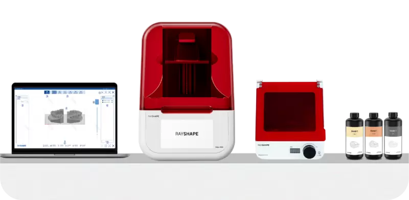 铼赛数字化齿科解决方案包含Edge mini椅旁专用3D打印机、清洗机ShapeWash和固化机ShapeCure D mini等全套硬件产品,通过这一整套落地方案,可以实现椅旁诊疗全流程数字化闭环,大幅提升诊所效率,使打印任务全流程至简、快速流畅。