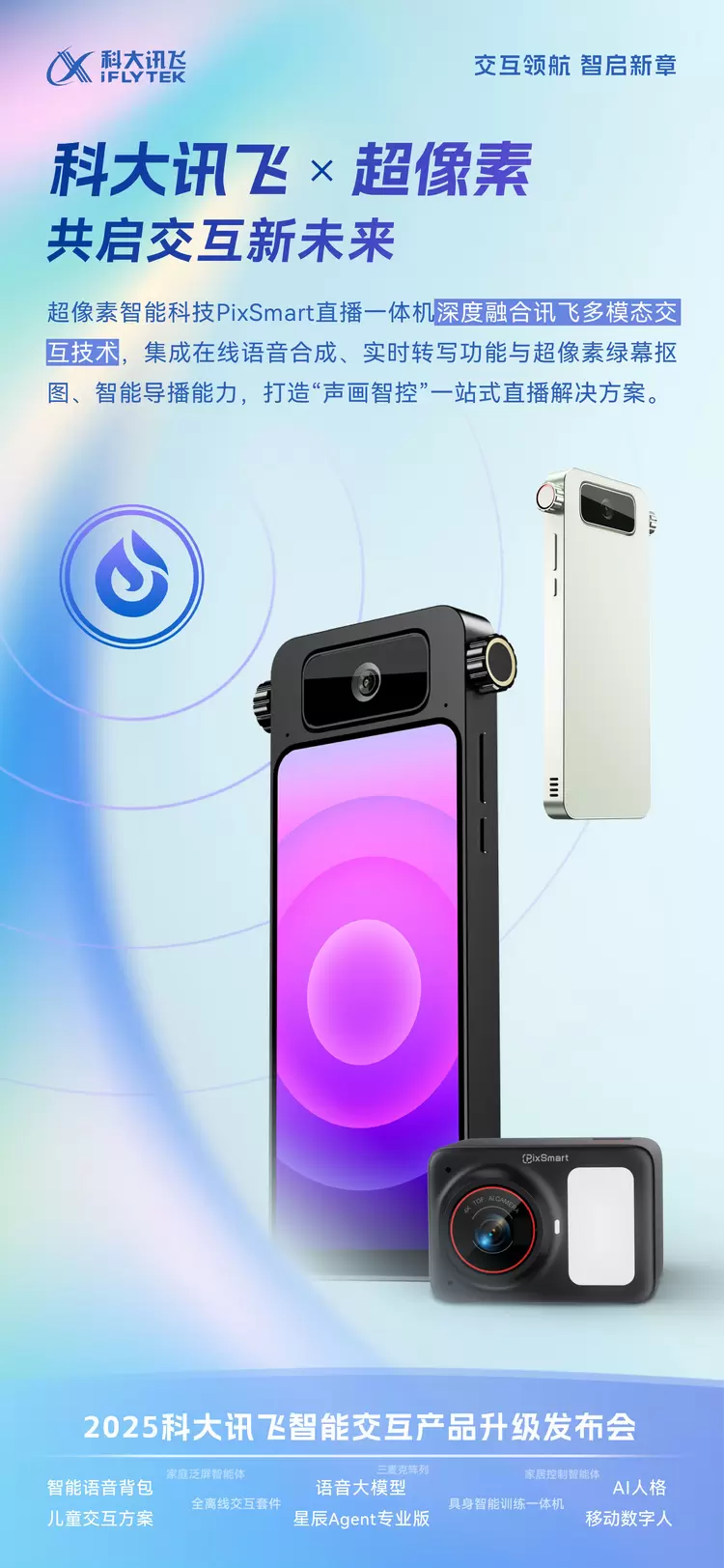 6 月 12 日,2025 科大讯飞智能交互产品升级发布会于深圳顺利举办。以「交互领航 智启新章」为主题,数百位企业代表、优秀开发者与 AI 技术专家齐聚一堂,共同开启大模型时代的交互新未来。作为科大讯飞生态合作伙伴,深圳市超像素智能科技有限公司(简称「超像素」)携旗下直播一体机重磅登场,以多模态交互技术与视觉解决方案的创新融合,成为展区焦点。