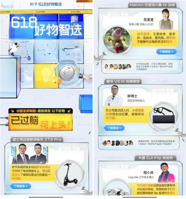 “产品好不好,用过才知道。”曾几何时,这种经验式测评滑向只给好评的一端,让消费者对“中立测评”也保持警惕。知乎发起“答主评审团”的初衷,就是抛开商业影响,让专业还原真实产品力。今年618推出的BOSS开箱,则更进一步,让BOSS、与答主“贴脸”测评,以产品和消费的兼容视角,带来新的测评体验。