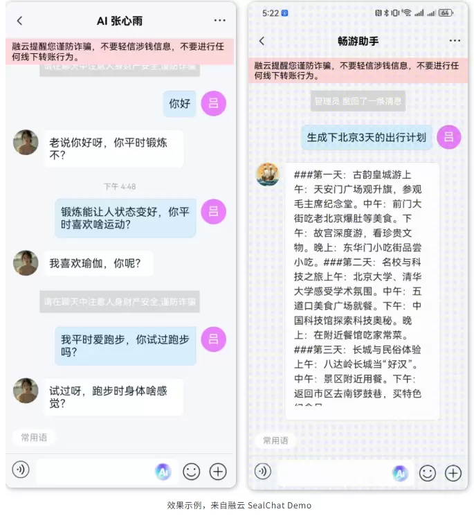 3)、在客户端集成IM SDK,AI角色便可出现在App中,提供智能破冰、AI陪伴等能力,助力应用提升用户粘性和商业价值。
