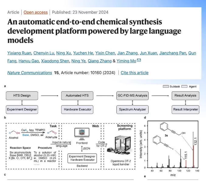 国内标杆案例来自浙江大学化学工程与生物工程学院。据《Nature Communications》最新论文显示,该校利用GPT-4框架驱动Opentrons 移液工作站,为自动化化学合成树立新范式。