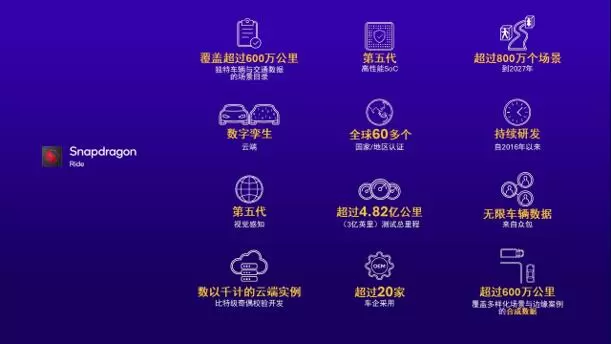 随着汽车行业持续演进,Snapdragon Ride平台在塑造未来交通方面发挥了关键作用,为汽车创新树立全新标杆。白皮书显示,Snapdragon Ride平台已在60多个国家和地区落地,平台已构建起一个覆盖超过600万公里独特车辆与交通数据的场景目录,驾驶辅助测试总里程数超过4.82亿公里。
