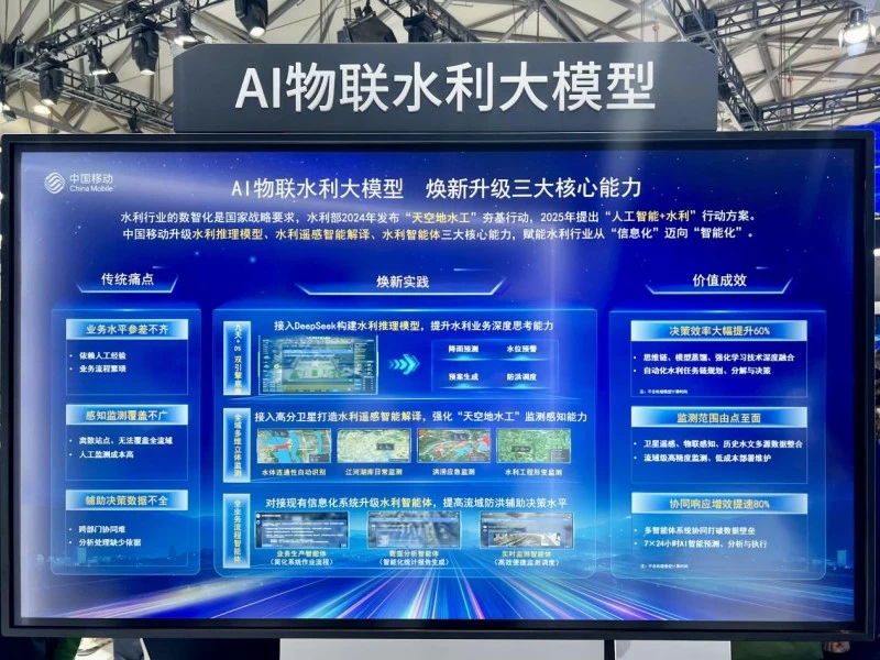 6月18日,2025上海世界移动通信大会(MWC上海2025)在上海国际博览中心开幕。中移物联网有限公司(以下简称“中移物联”)物联水利大模型亮相中国移动展区“AI物联水利大模型”展台,展示了全新升级三大核心能力,为智慧水利建设注入强劲科技动能。