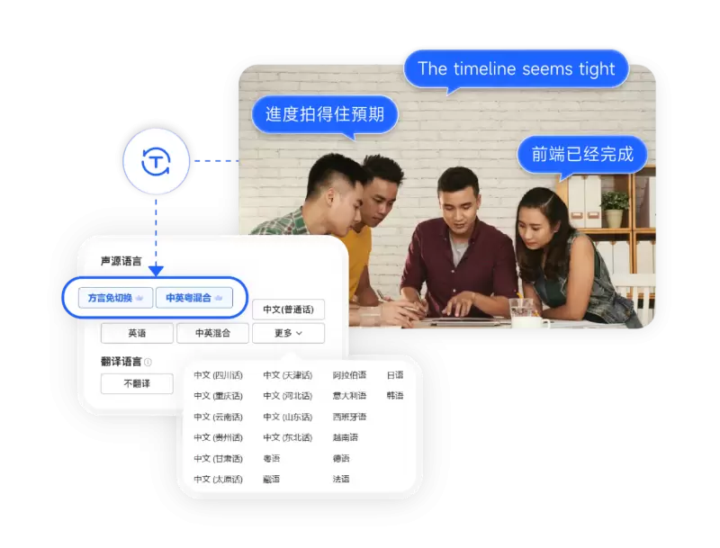 针对跨国会议、粤港澳商务洽谈等多语言场景,系统支持中英粤混合表达自动识别,实时转写对应文字,沟通效率倍增。此外,除标准普通话外,方言的识别能力全面升级,无需手动切换即可转写,准确率显著提升,真正实现 “方言自由表达、系统智能转写”,让不同地域用户的沟通更顺畅,成为多语言场景下的智能会议助手。
