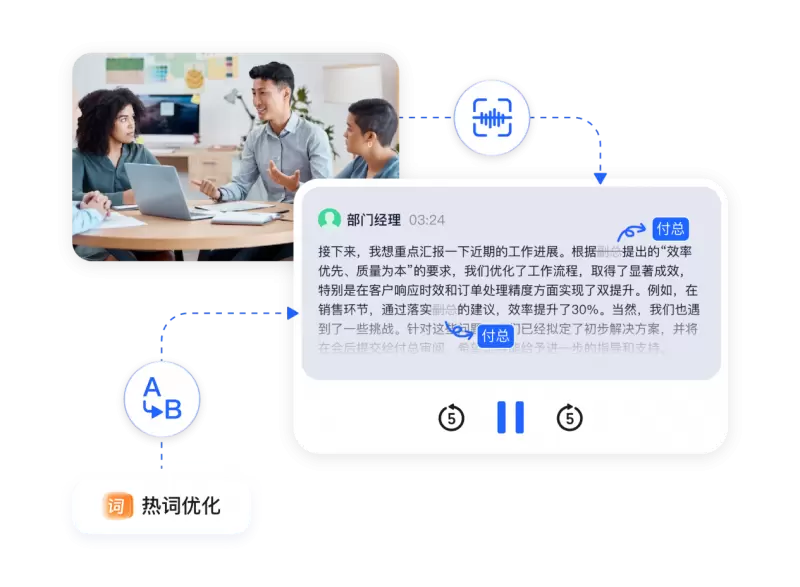 讯飞听见全新升级的 AI 会议纪要功能,支持将用户记录(包含高亮打点、标记、记笔记内容)、用户图片(指结合插入的图片里的文案内容)与语音转写结果智能融合。系统可自动识别笔记重点、补充转写遗漏,生成专属的完整会议纪要,帮助用户告别会后加班整理的繁琐工作,将更多精力聚焦业务推进,真正实现 “会议结束即得纪要” 的高效体验,重新定义专属智能会议助手的价值。