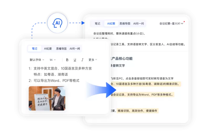 讯飞听见语音转写引擎重磅升级!中英粤自由说,AI纪要轻松掌控笔记图片重点
