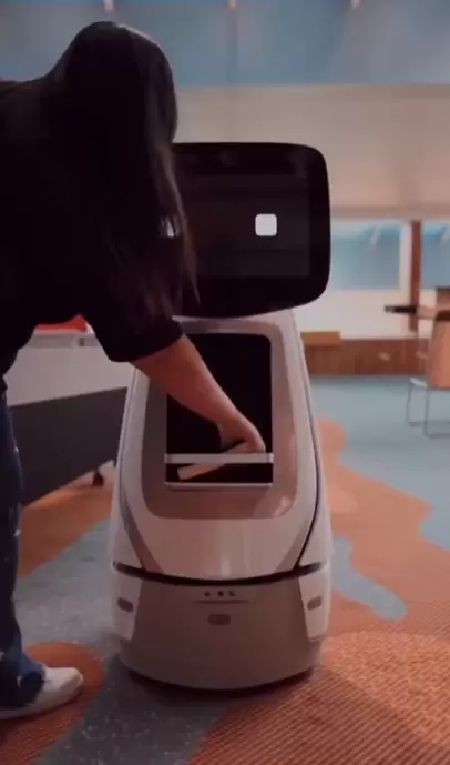 凭借精准的图书定位与高效响应,特斯联智能机器人无缝穿梭于书架与读者之间,自主完成检索、递送等任务。同时,它们还能串联电梯、书架等40余类设备,构建起多模态服务网络:读者轻点手机,机器人便自主搭乘电梯,准确送达书籍至指定位置。当地居民纳伊夫感叹:“在手机上输入想看的书名,机器人就能自己跑上跑下,为我们读者带来了更多便利。”
