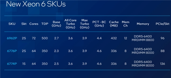 AP平台的双路至强6最多可以提供192条PCIe 5.0通道,也就是可以每路提供96条通道,相比上一代提升20%,内存通道也可以高达12个。直接匹配多GPU的高速接入需求,避免因通道不足导致的带宽瓶颈。