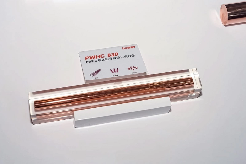 博威合金深谙焊接失效根源,其推出的PWHC系列高性能铜合金,并非简单参数提升,而是对材料微观结构与性能边界的系统性突破。以PWHC830为例,其独特的Al2O3颗粒分布技术构筑起高温下的稳固防线,抗高温软化温度直指900℃,同时保持80% IACS的高导电率。这一组合拳精准打击铝合金焊接中的电极粘连顽疾,显著延长电阻焊电极、动力电池焊针等部件的使用寿命,减少维护修磨次数,从而提高生产效率。