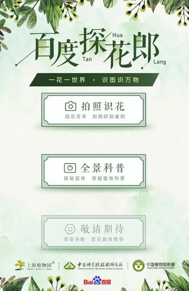 9月17日,百度在上海与上海植物园、中国科学院西双版纳热带植物园、中国科学院武汉植物园、中国科学院植物研究所、北京植物园以及中国科学院昆明植物研究所昆明植物园5家国内知名植物园达成合作,共同推出“AI植物园计划”,并落地“百度探花郎”产品。