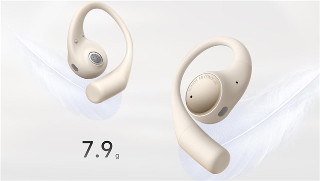 荣耀Earbuds开放式耳机单耳重量仅7.9克,以三点受力结构搭配镍钛合金耳挂与液态硅胶包覆,为用户带来舒适轻盈无压感佩戴体验。产品首发自研双低音算法,续航最长26小时,支持15分钟快充畅听2小时,具备多项实用功能。