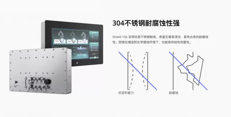 iEi威强电全新SHIELD 系列15.6"工业平板电脑,通过304不锈钢外壳与IP66级防护,打造“坚固如盾”的工业触控终端,让智能化应用在严苛环境下依然稳健可靠。