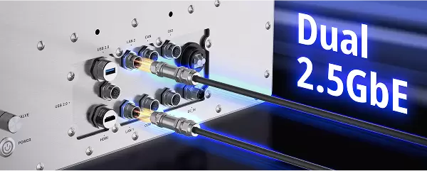 双2.5GbE以太网口(Intel I226-IT),支持高速数据传输;可选Wi-Fi 6E + Bluetooth 5.2模块,内置Nano-SIM插槽支持蜂窝网络,灵活应对各种网络环境。