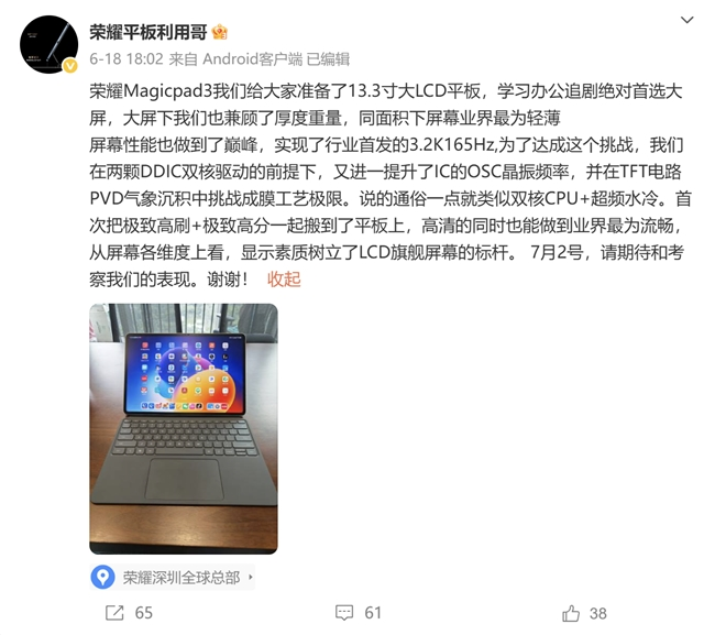 新款荣耀平板MagicPad 3还会带来哪些惊喜,7月2日,荣耀Magic V5暨AI终端生态发布会将全面揭晓。